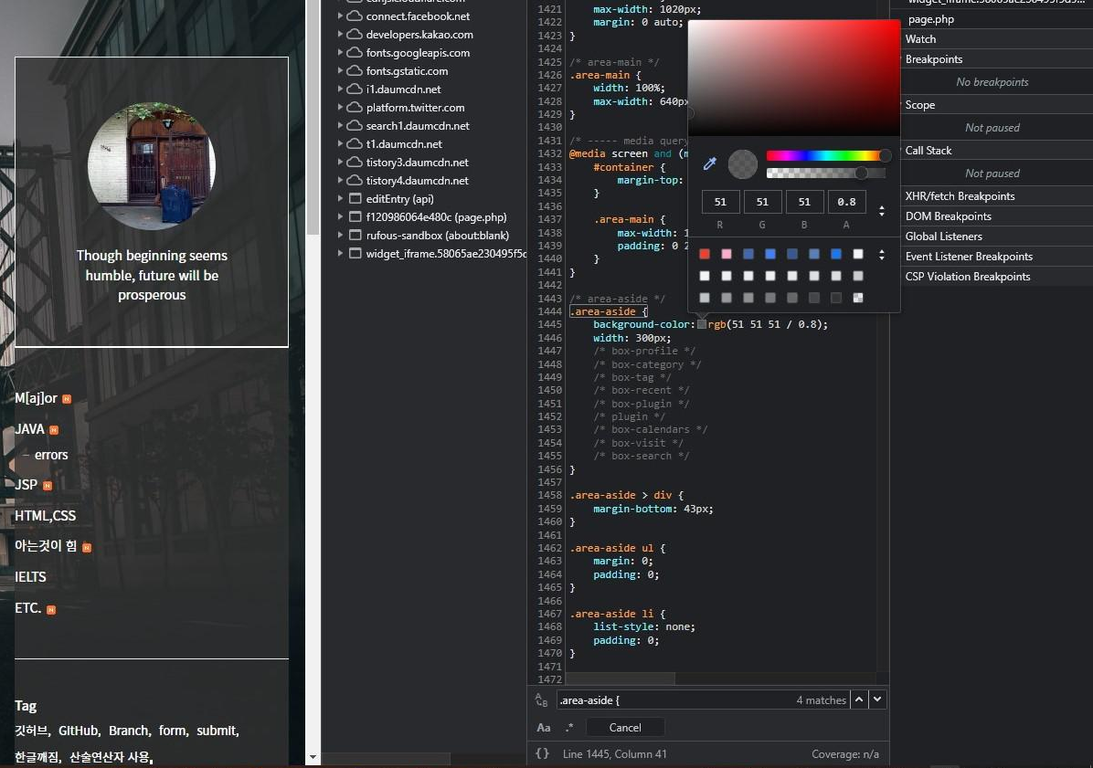 css>.area-aside{ backround-color: 색조정(색,색,색 / 불투명도);